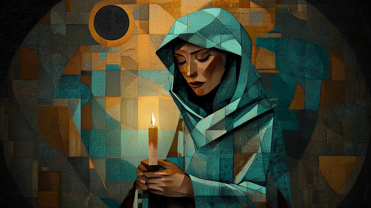 A fitting practice for this devotional could be something like a silent meditation or a candle ritual in the darkness. Instead of drawing down the moon’s light, we sit with the unseen, welcoming the mystery, lighting a single candle not to banish the darkness but to honor it. We acknowledge that the intricate beauty of the cosmos is beyond full comprehension and that in this darkness, we find a different kind of wisdom.
